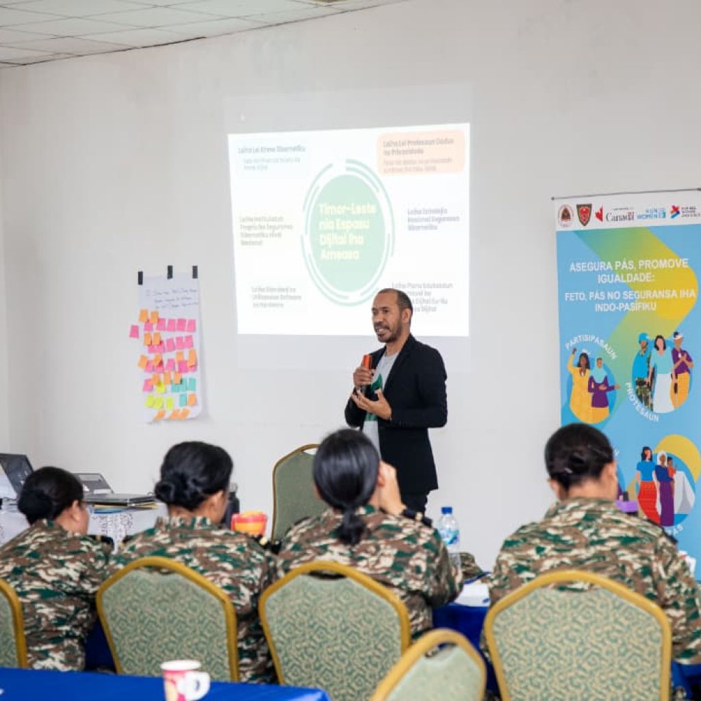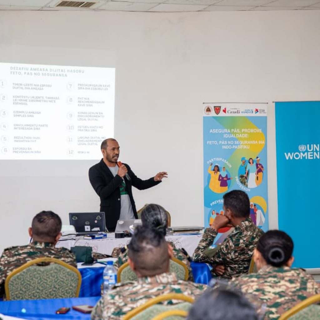 FHT Aprezenta Dezafiu Ameasa Dijital Hasoru Feto iha Workshop PAN 1325 iha Kuartel Jeral, Ministeriu Defeza, Fatuhada, Dili