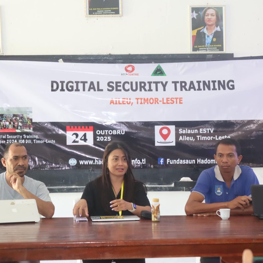 Aileu, Iha loron 24 Outubru 2025, Fundasaun Hadomi Timor (FHT) hamutuk ho Asia Centre ho susesu hala’o formasaun lokal dahuluk kona-ba seguransa dijitál iha Timor-Leste iha Salaun ESTV Aileu. Formasaun ne’e halibur estudante, mestre, foinsa’e no membru sosiedade sivíl sira iha Munisipiu Aileu, atividade ne’e remata ho di’ak no partisipantes sira hetan abilidade foun sira hodi bele seguru iha ambiente dijital no online.