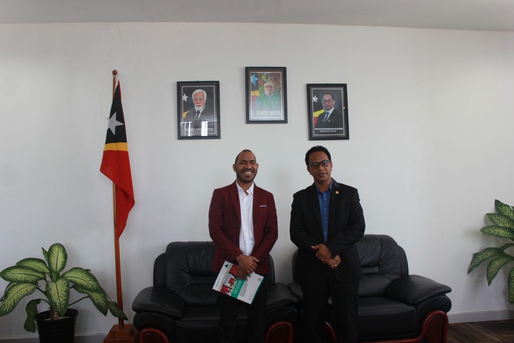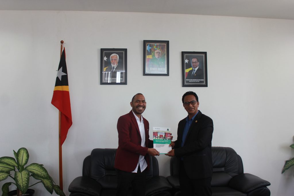 On April 25, 2025, the Executive Director of the Hadomi Timor Foundation (FHT), Abrão Monteiro Nicho Linux, together with the FHT team (Yohanes Dos Santos, Albertina Kikilay and Afonso), held an important audience with the Minister of Justice HE Dr. Sérgio de Jesus Fernandes da Costa Hornai, at the Office of the Minister of Justice Caicoli, Dili.