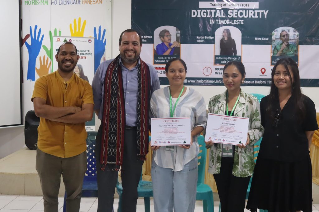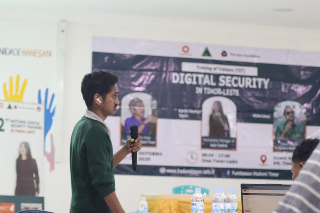 Fundasaun Hadomi Timor (FHT), iha parseria besik ho Asia Centre no hetan apoiu husi The Asia Foundation in Timor-Leste (TAF), konklui ho susesu Formasaun intensivu ba Seguransa Dijitál ba Formadór sira (TOT) ne’ebé hala’o iha loron 27–28 Outubru 2025, iha Salaun HAK, Dili. Eventu loron rua ne’e nu’udar parte ida husi Programa Formasaun Seguransa Dijitál ba dala 2, ne’ebé estratéjikamente dezeña atu harii rede kualifikadu husi fasilitadór lokál sira ne’ebé iha kapasidade atu replika no hasa’e konxiénsia komunidade sira kona-ba seguransa dijitál iha Timor-Leste laran tomak.