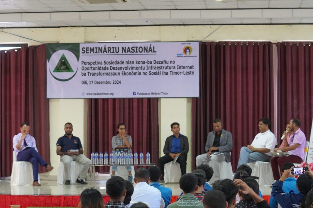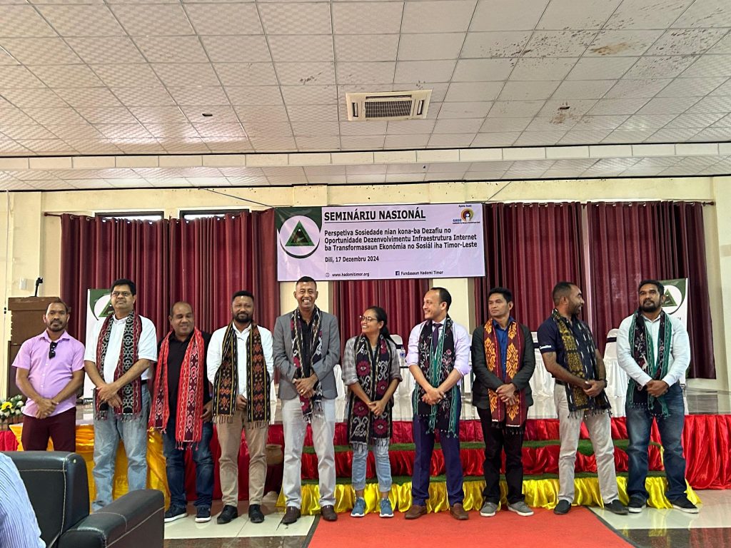 On 17 December 2024, Fundasaun Hadomi Timor (FHT) successfully organized a National Seminar on Internet Infrastructure Development for Social and Economic Transformation in Timor-Leste, held at the IOB Hall in Dili. This landmark event brought together a wide range of stakeholders to discuss the current state, challenges, and opportunities of internet infrastructure as a catalyst for national development.
